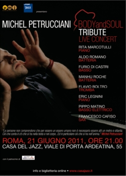 Il Concerto nato e promosso da Andrea Stucovitz ha avuto lo scopo di promuovere l’uscita del film BODY & SOUL e valorizzarne quanto più possibile il contenuto di carattere culturale sia per il mondo del cinema che per quello della musica. Il 21 giugno 2011 ha avuto luogo questo grande evento musicale che ha visto la partecipazione di grandi musicisti jazz che hanno preso parte anche alle riprese del film e altri che hanno contribuito negli anni alla produzione musicale di Petrucciani. Il cartellone era così composto: Rita Marcotulli (piano), Aldo Romano (batteria), Furio Di Castri (Basso), Manhu Roche (batteria), Flavio Boltro (tromba), Eric Legnini (piano), Rippo Matino (basso elettrico), Francesco Cafiso (sax). Alla serata sono stati presenti, il produttore cinematografico Andrea Stucovitz per la società italiana PMI srl, il regista del film Michael Radford e le rappresentanze diplomatiche di Francia e Germania. Il concerto ha avuto come cornice la splendida Casa del Jazz di Roma, Il concerto è stato una co-produzione PVA, PMI e Casa del Jazz di Roma, con il sostegno dell’Ambasciata di Francia.